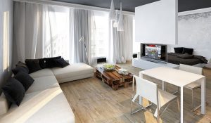 Căn hộ 50 m2 với hai tông màu đen trắng